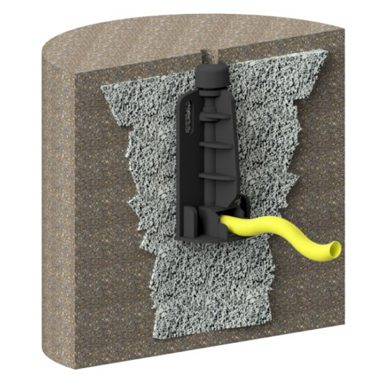 För en säker och hållbar förläggning. Snabb och enkel installation för montering på Ø 60 mm stolprör. Tillverkad av 100% återvunnen plast, betydligt lättare än motsvarande betongfundament.